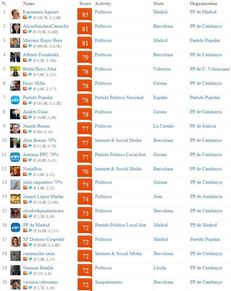 En esa etapa es cuando abrió su cuenta de Twitter y la mayoría de Redes Sociales, con las que figuró como uno de los políticos más influyentes en Redes Sociales de España, según el Klout Score y entre los 10 primeros del Partido Popular a nivel nacional.