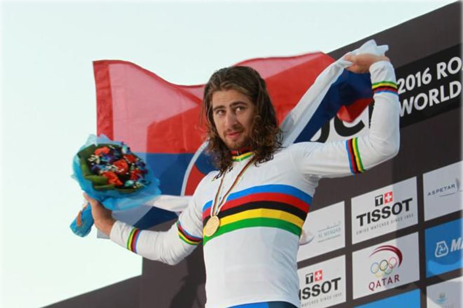 El eslovaco, en el sofocante circuito de Doha, reedita el título mundial y se convierte en el sexto ciclista que encadena dos ‘arcoiris’ consecutivos cautiva por su gran habilidad con la bicicleta y las excentricidades fuera de la carretera. Un filón para los patrocinadores.